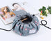 Say goodbye to digging and dumping in a traditional (black hole) bag! This amazing drawstring makeup pouch enables you to unpack and pack your cosmetics in just a matter of seconds! No more delays for that last minute retouch!
