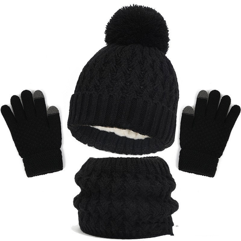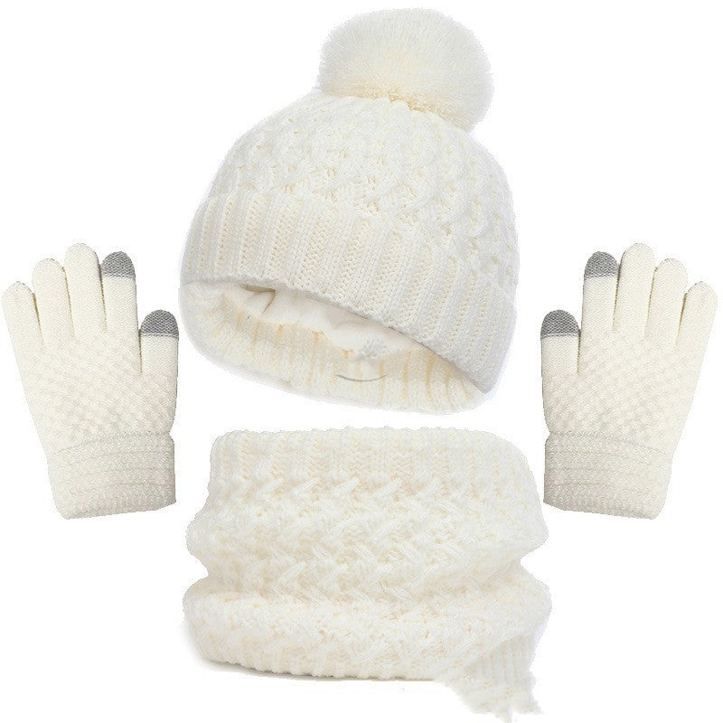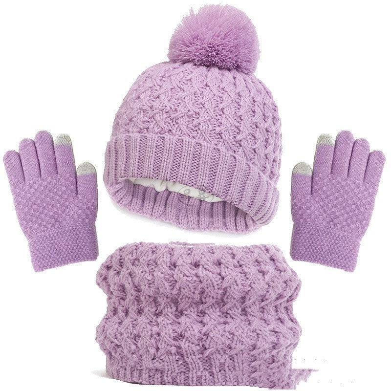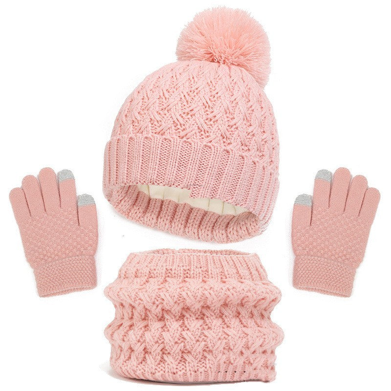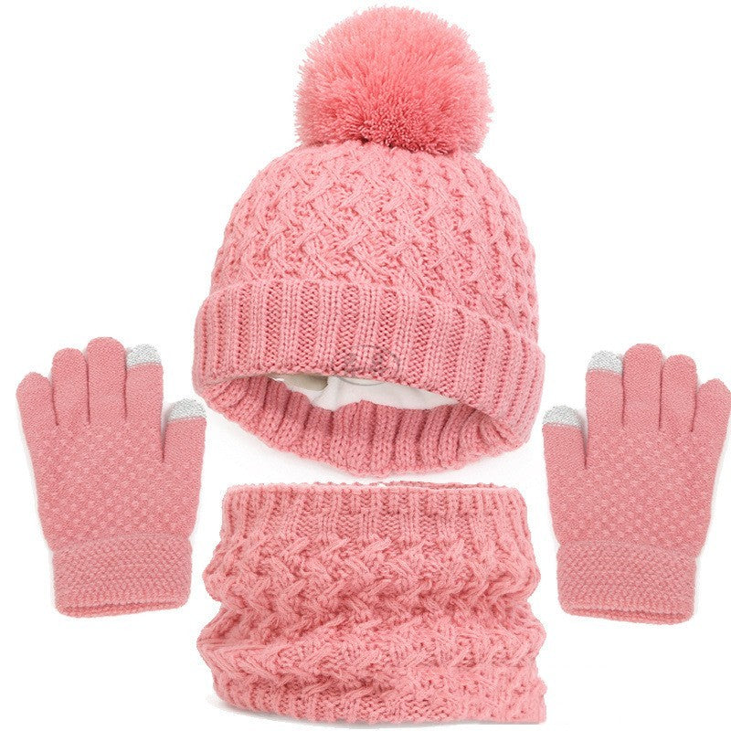 Product information: Color: pineapple pin beige three-piece set, pineapple pin light pink three-piece set, pineapple pin pink three-piece set, pineapple pin gray three-piece set, pineapple pin milky white three-piece set, pineapple pin black three-piece set, pineapple pin purple three-piece set, pineapple pin rainbow three-piece set Crown style: Dome Main fabric composition: acrylic fiber Size: average size Function: keep warm Cap length: 18cm Cap width: 18cm Glove length: 15cm Glove width: 10cm Neck length: 20.5cm Neck width: 15cm