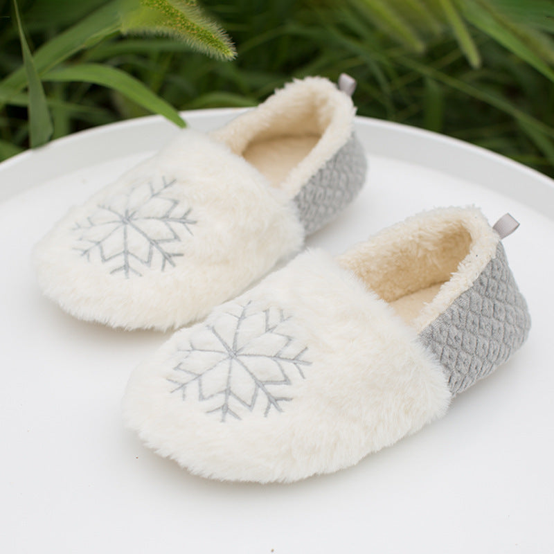 Product information: Pattern: Snowflake Lining material: comfortable cotton velvet Color: gray, pink Shoe Upper material: Shu cotton velvet Wearing method: oversleeves/shoe covers Applicable Gender: Female