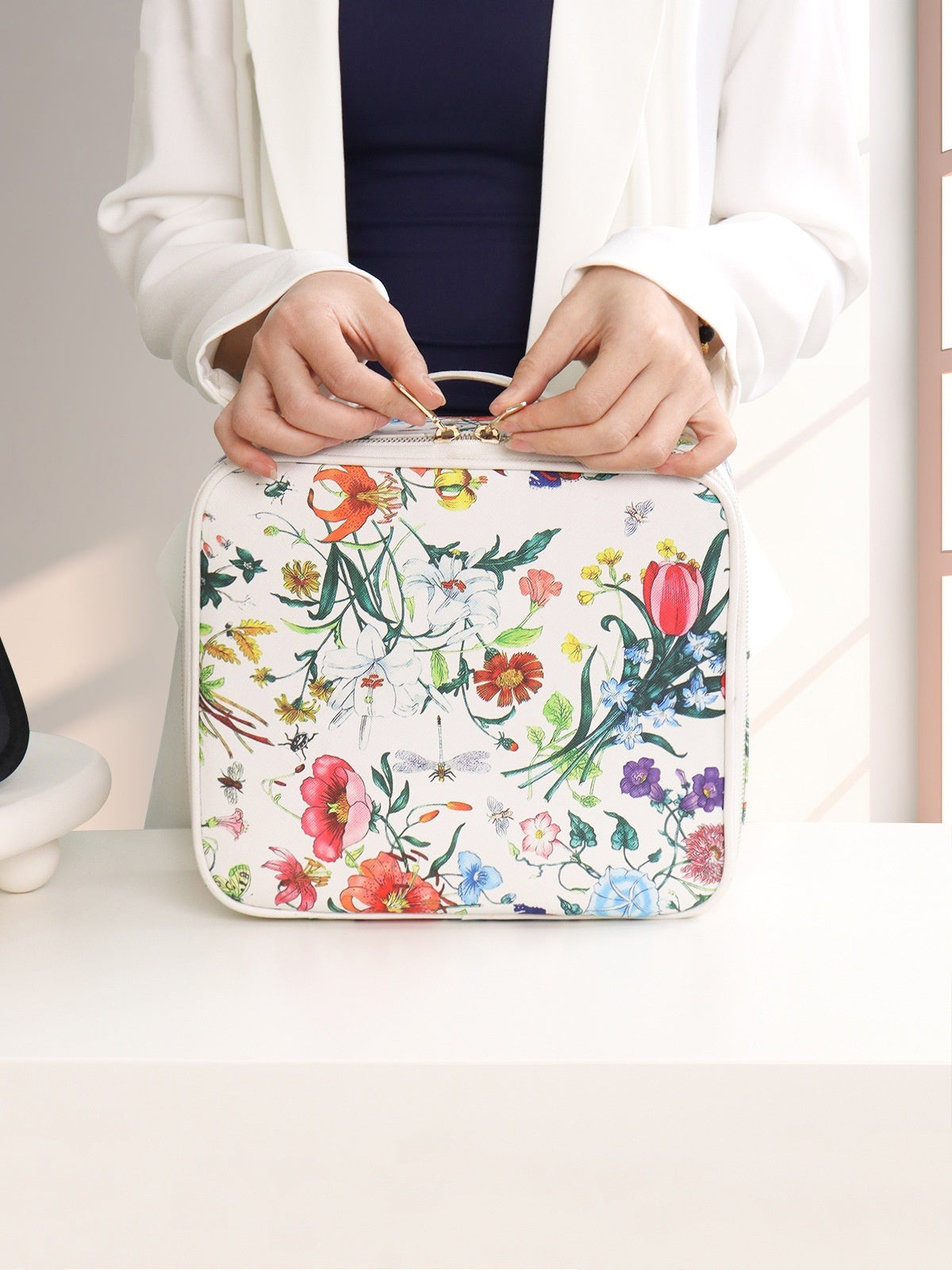Product information: Lining texture: Polyester Color: Garden cosmetic bag (with 2000 mA LED light mirror) Function: Storage Material: PVC Size: 12 inches Specification: 26*22 * 10cm