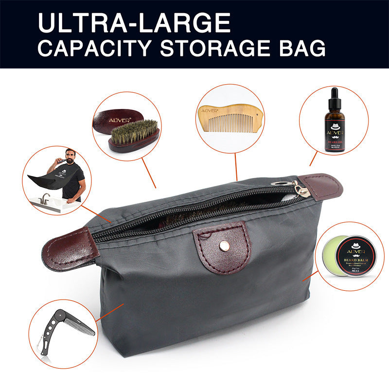 Beard Brush: Natual Solid Wood+Natual Bristle Beard Aprons: Beard Bib Quantity: 7 pcs/set Beard Comb: Log comb&Metal comb