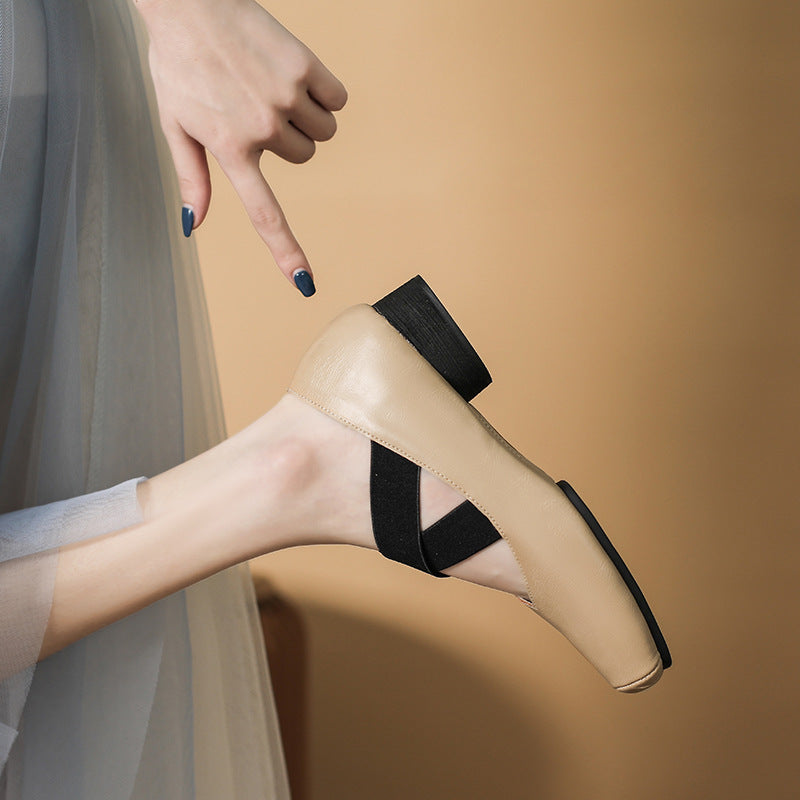 Popular elements: shallow mouth, thick heel, buckle, color matching, ankle strap