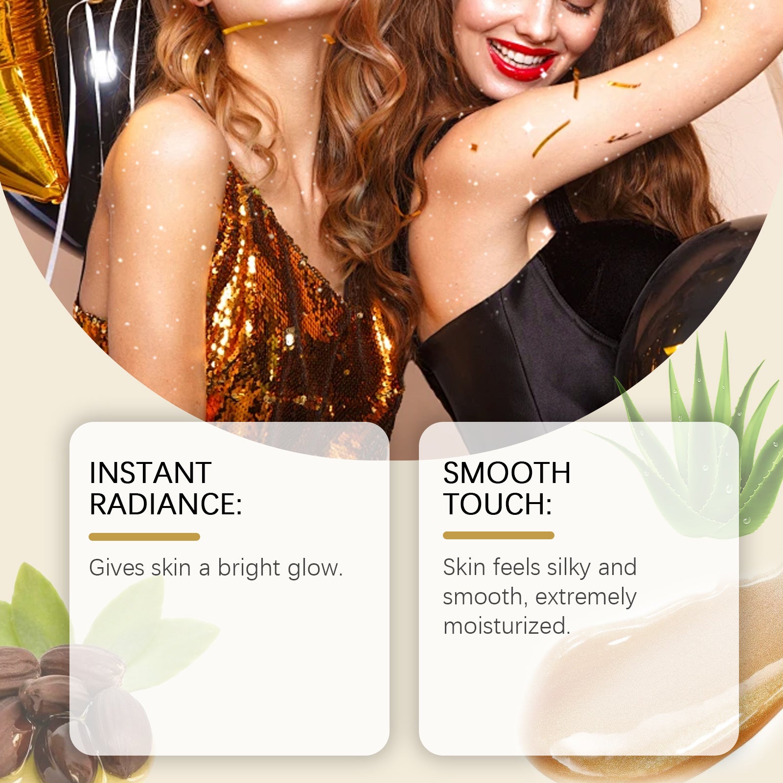 Our Bronze Body Glitter Oil contains vegetable squalane, green tea polyphenols, grape seed polyphenols. It can give a bright glow to the skin. Its application is simple: cleanse the skin and keep it dry. Apply an appropriate amount evenly to the skin of the body. Massage until absorbed. And it leaves skin feeling silky smooth and extremely moisturized.