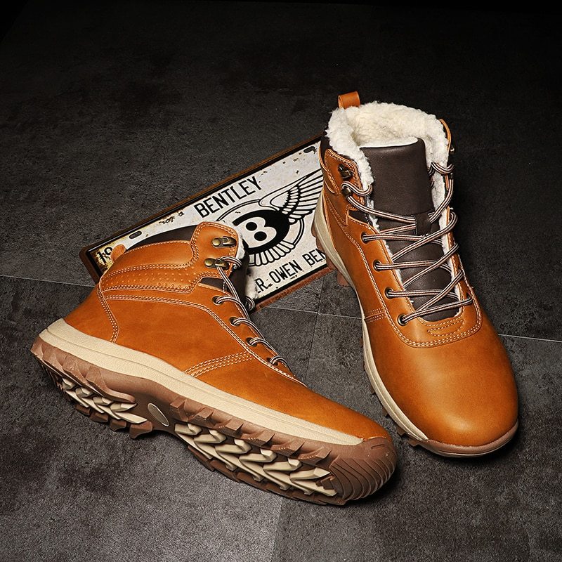 Process: Adhesive shoes Function: Waterproof, heightened, shock absorption, warmth, breathable, wear-resistant, non-slip Processing method: Lacquered Applicable gender: male Upper Material: Artificial PU Sole Material: Rubber Outsole material: non-slip rubber Toe shape: round toe Heel height: flat heel Sole craft: viscose shoes suitable season: winter pattern: plain Wearing style: front tie