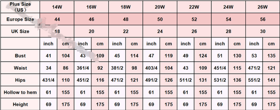 Size: 2,4,6,8,10,12,14,16,14W, 16W, 18W, 20W, 22W, 24W, 26W