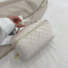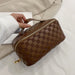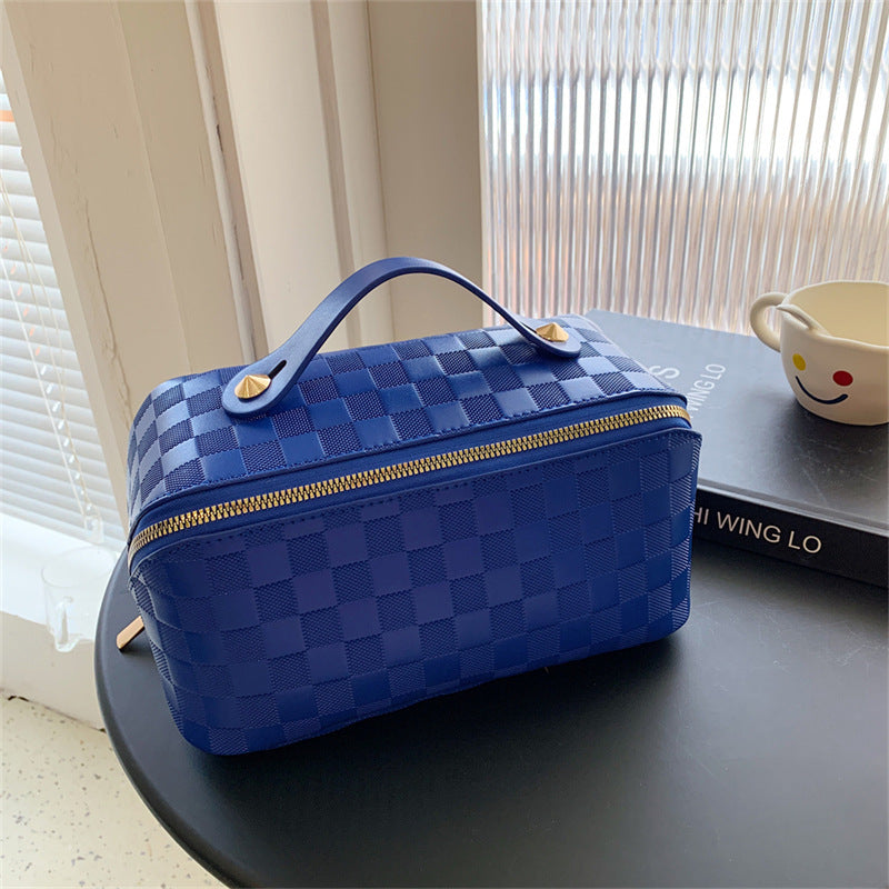 Product information: Product category: cosmetic bag Material: PU leather Pattern: solid color Color: brown, green, blue Size: 25cm wide, 12cm high, 12cm thick Packing list: Women's satchel * 1