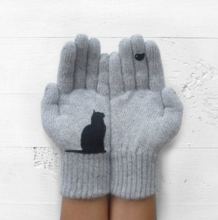 Material: Cashmere Application classification: clothing gloves Applicable gender: Female Function: keep warm Pattern: Kitten Color: Khaki, Black, Pink, Grey